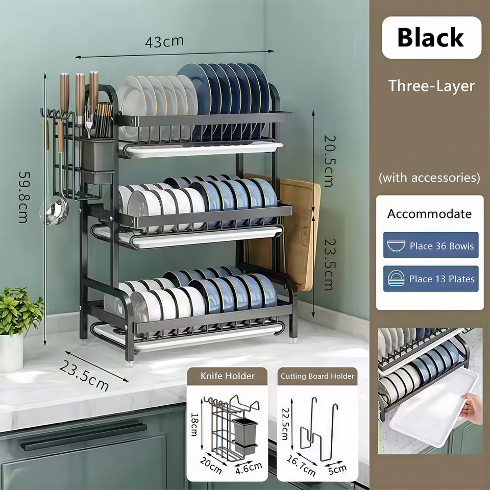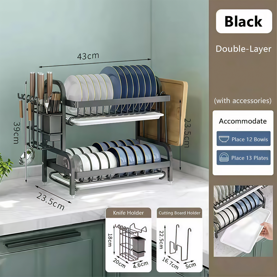 Organizador moderno para fregadero de cocina, plato multifuncional para encimera, escurridor de platos con componentes ajustables y bandeja de goteo