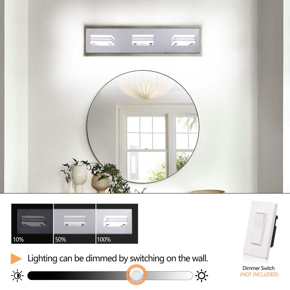 Lámparas LED Modernas de 3 Luces para Baño, Iluminación de Pared Cromada Regulable para Espejos de Baño