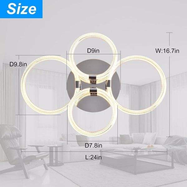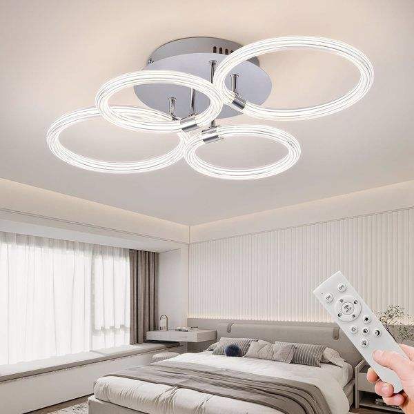 Modern LED Flush Mount Ceiling Light 6Rings Acrylic for Bedroom Living Room Kitchen or Office Dimmable with Remote Control