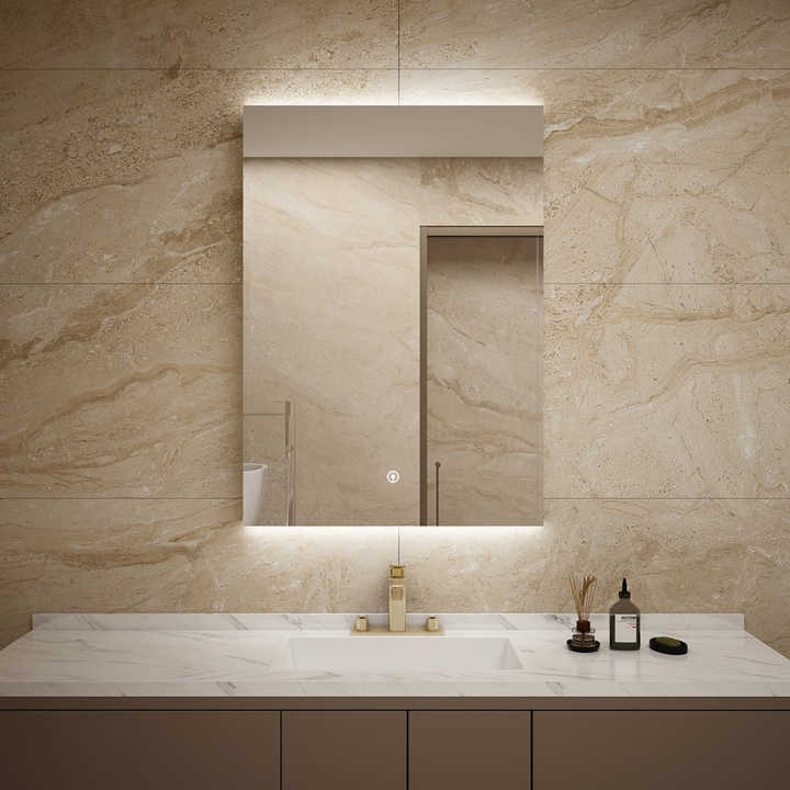 Espejo de baño iluminado con LED montado en la pared plateado moderno rectángulo IP44 para el hogar Hotel o salón propósito decorativo