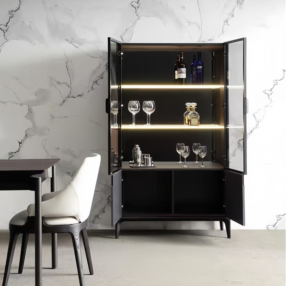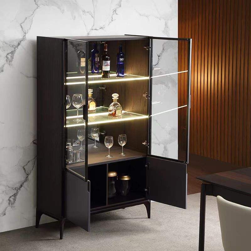 Luz LED moderna Comedor Clase alta Almacenamiento gris Gabinete de cocina Almacenamiento de madera Hogar Buffet Gabinete de vidrio