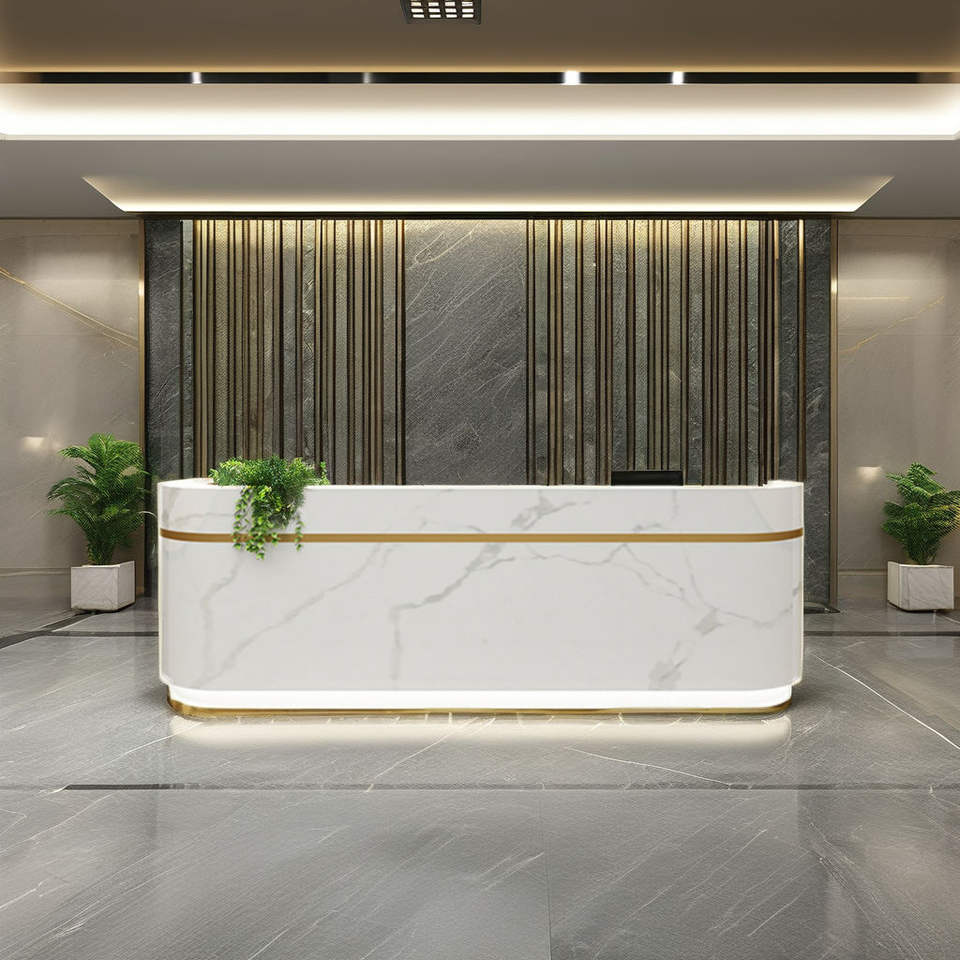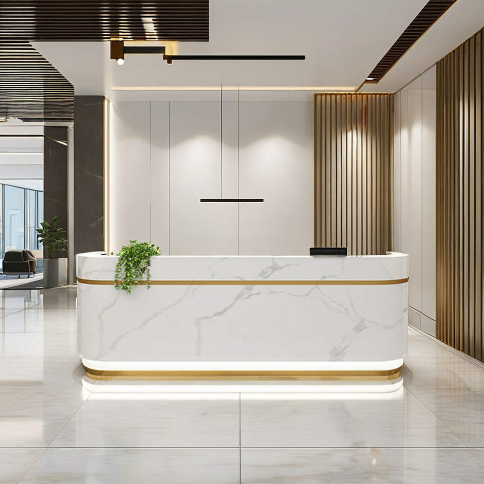 Mostrador de recepción LED moderno para salones de belleza, mostrador de recepción de oficina, mostrador de recepción de salón elegante