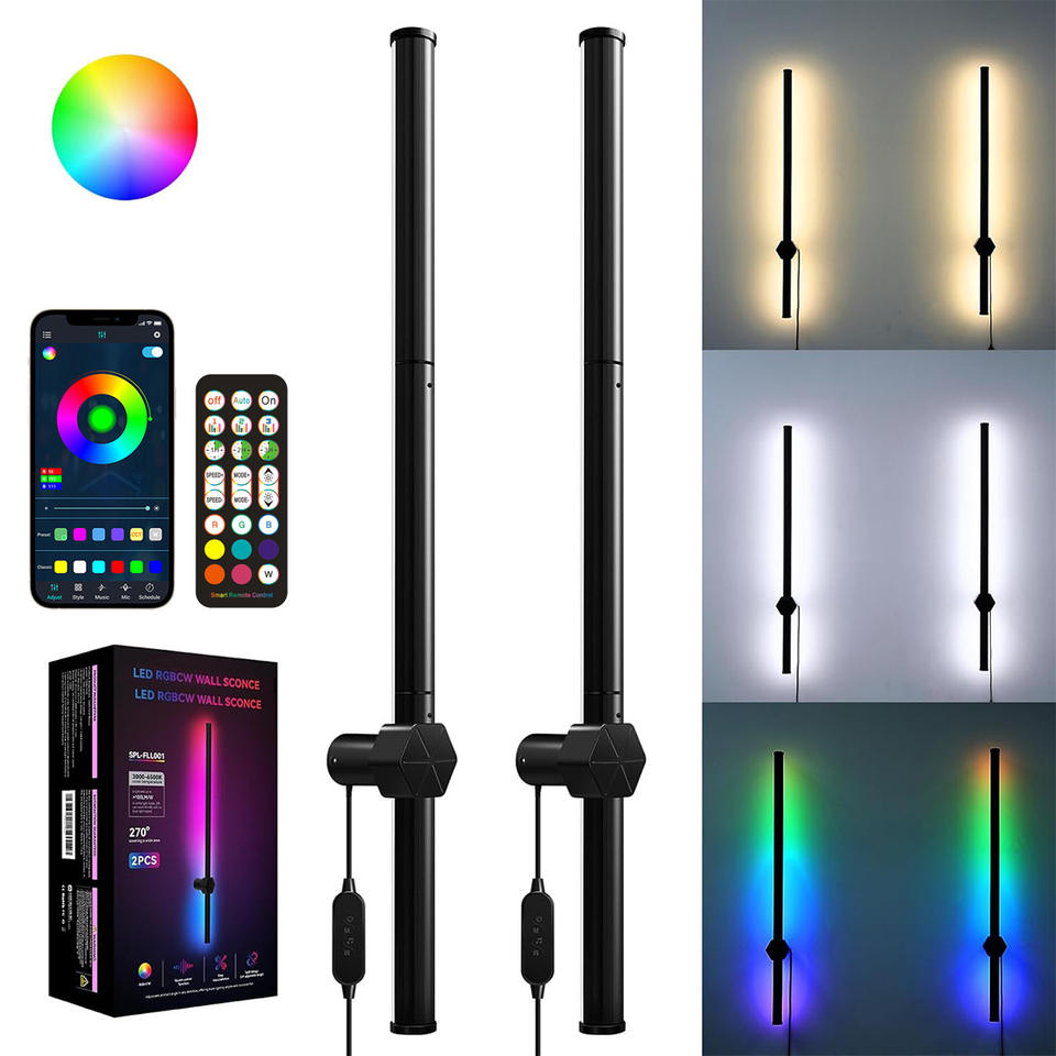 Lámpara de pared LED moderna, color RGBCW, giratoria 360°, adecuada para dormitorio, estudio, restaurante, sala de estar, bar, accesorio de iluminación ambiental