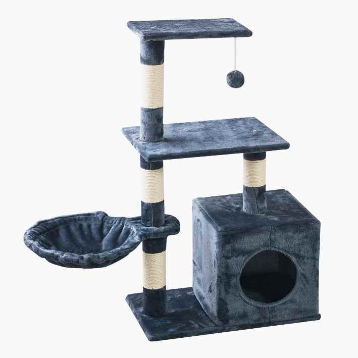 Árbol rascador moderno grande para gatos con rascador de madera, estantes de lana y sisal, casa de escalada interior para gatos, producto Meow Love