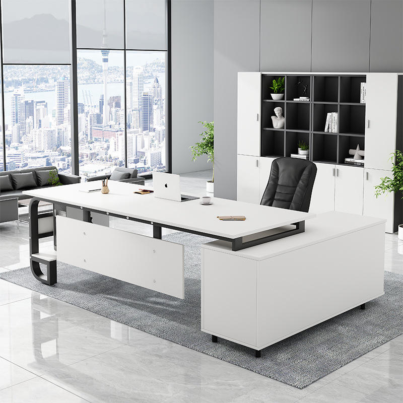 Escritorio de oficina grande y moderno tipo L, muebles de madera con tablero de melamina para jefes y trabajadores de oficina para uso con ordenador