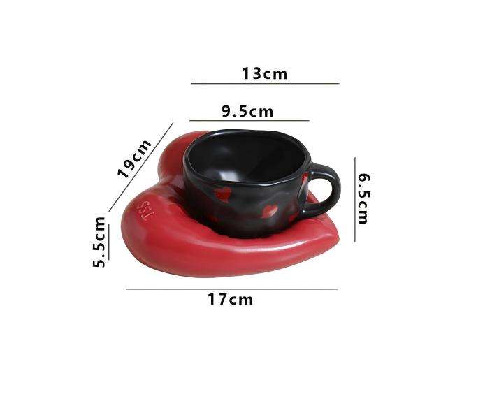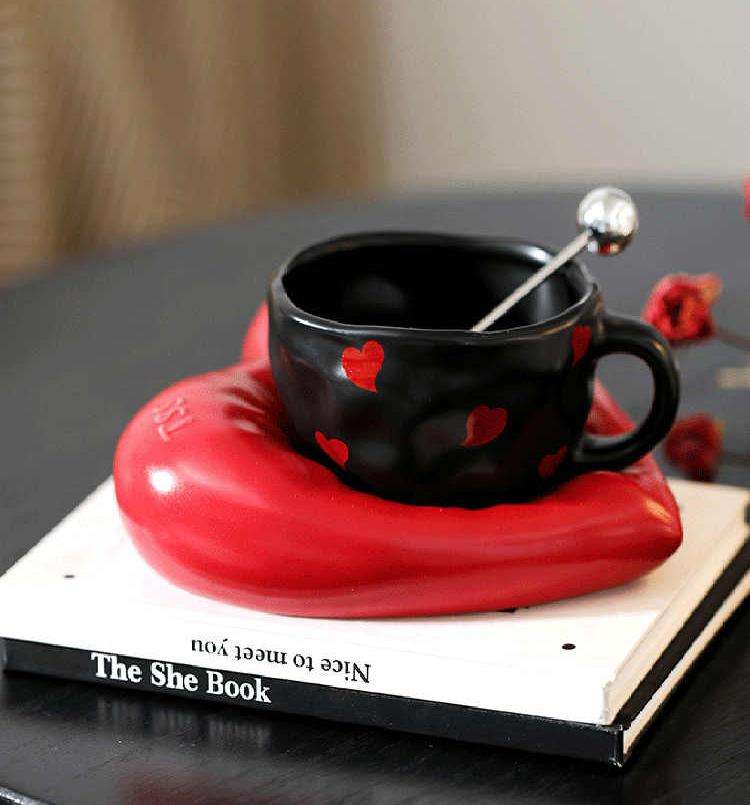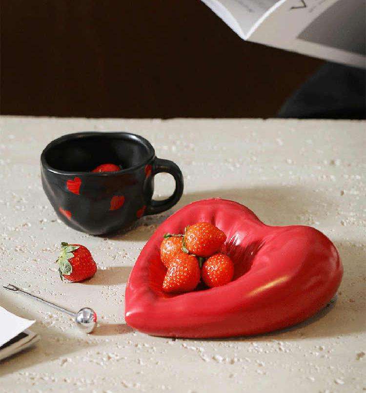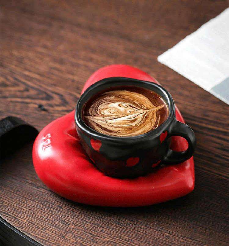 Moderno Juego de Tazas de Cerámica con Forma de Corazón, Diseño Pintado a Mano, Regalo de San Valentín