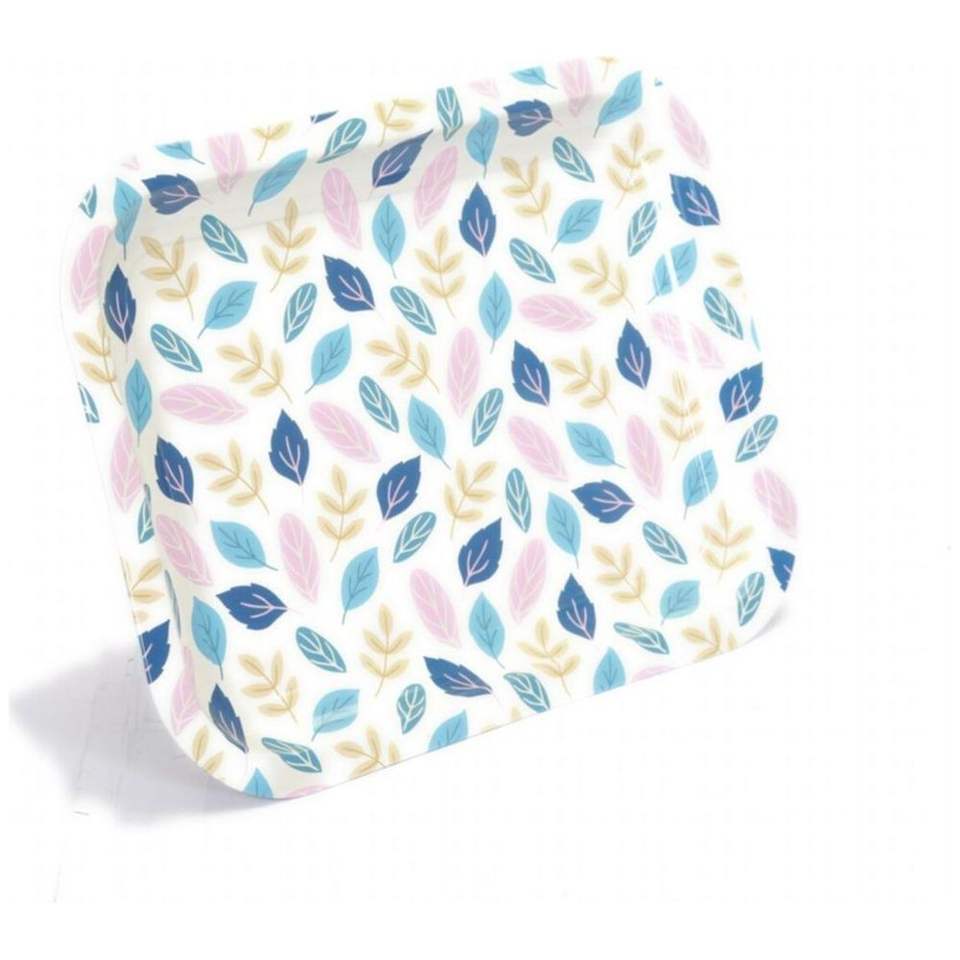 Bandeja Rectangular con patrón de hojas modernas, plato de servir de Metal de 233x307mm, acero inoxidable, cobre para servir alimentos, estilo árabe