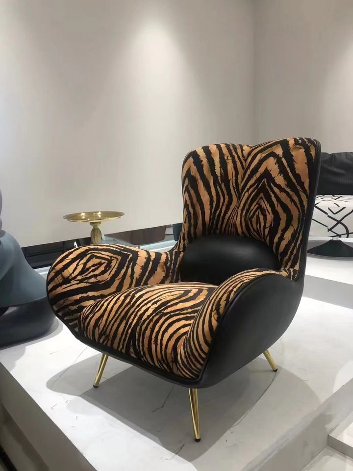 Sillón ergonómico de tela con estampado de leopardo moderno con patas de metal para sala de estar, hogar, oficina y Villa