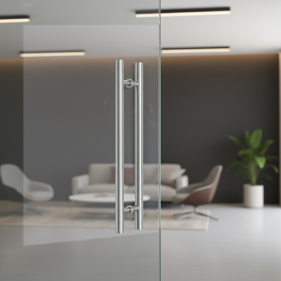 Tirador largo moderno para puertas offset; tirador para puertas de vidrio tipo H en acero inoxidable