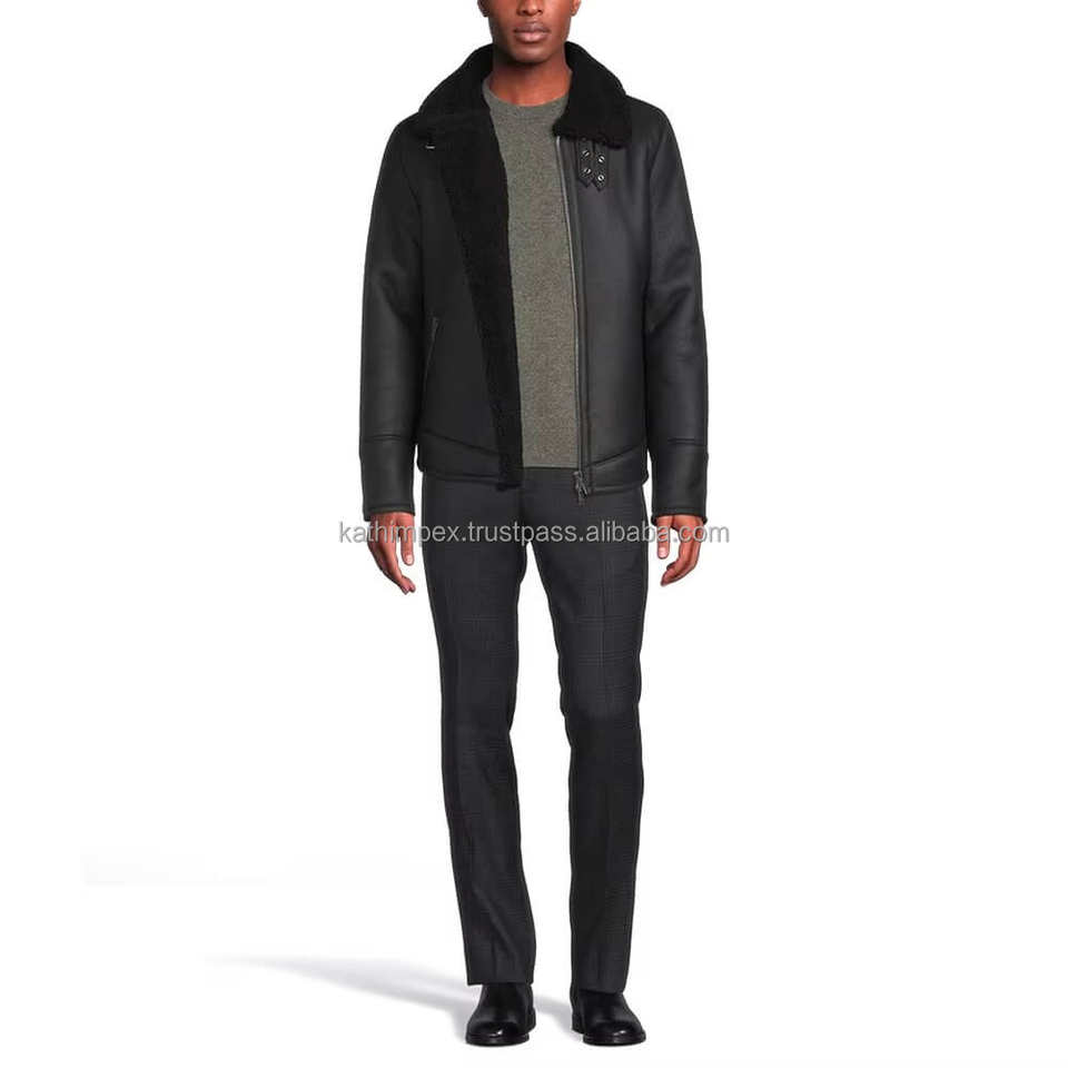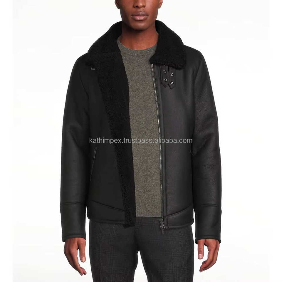 Chaqueta de piel de oveja negra de aspecto moderno para hombre con cuello de cinturón y estilo minimalista Ideal para ropa urbana de invierno