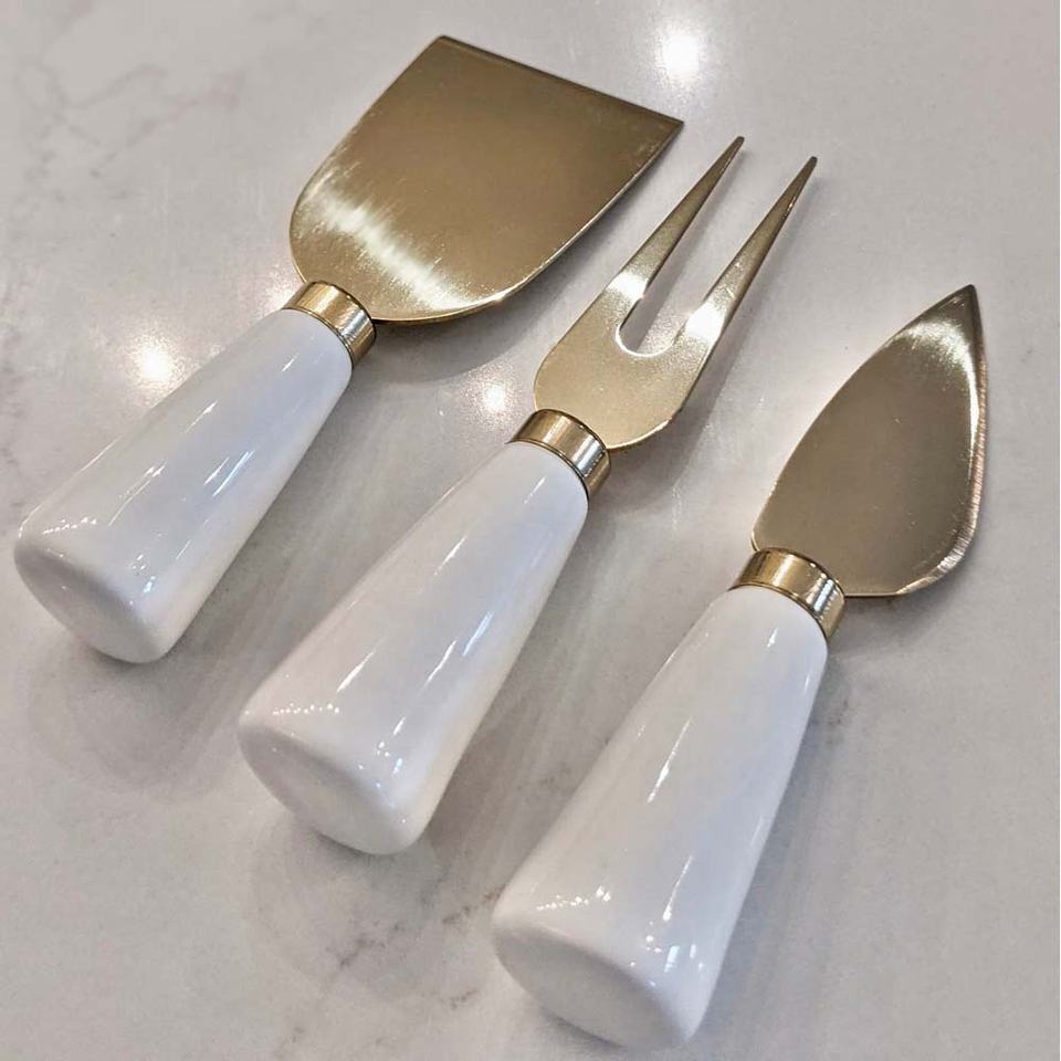Juego de Queso de Acero Inoxidable con Aspecto Moderno y Baño de Oro, con Mango de Cerámica, Juego de Cubiertos de Lujo de Alta Calidad para Bodas