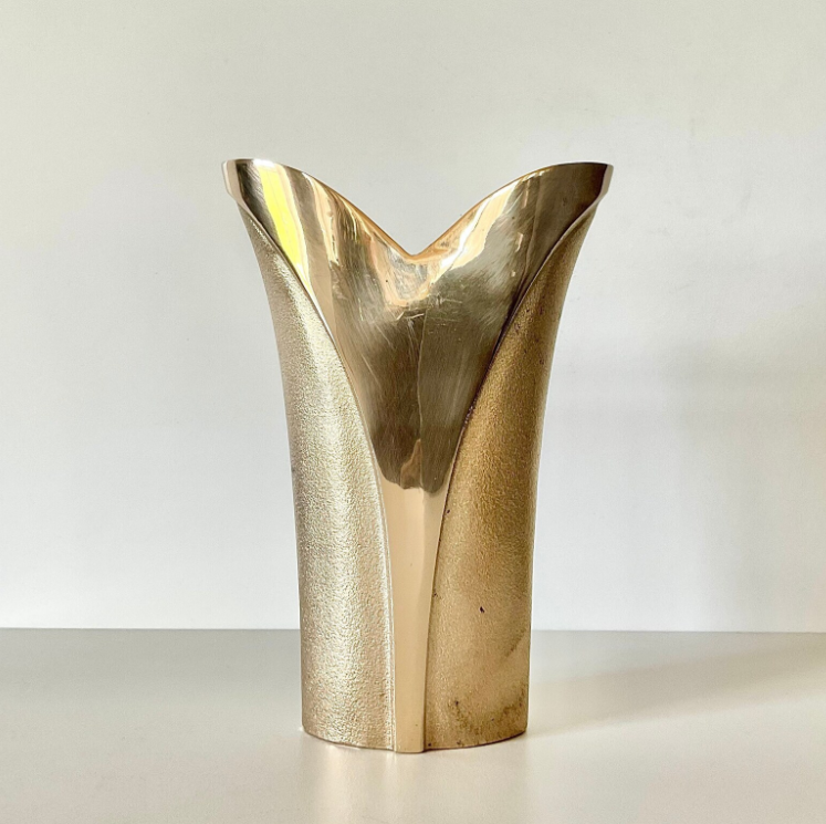 Jarrón Alto de Aluminio y Latón de Lujo Moderno, Fundido en Oro, Hecho a Mano, para Decoración del Hogar, Restaurante u Hotel