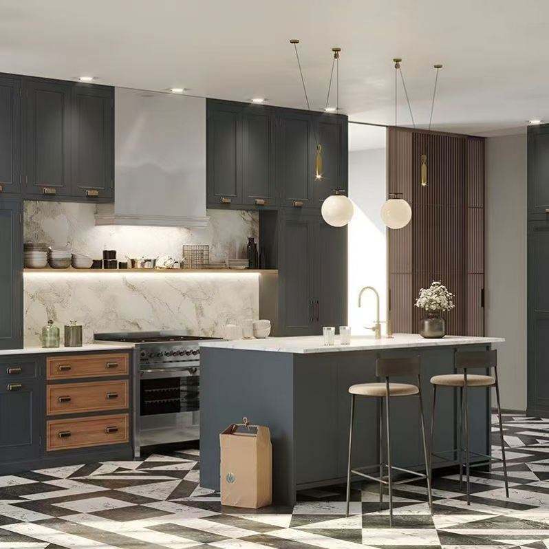 Juego de Muebles de Cocina Completo de Lujo Moderno, Isla Personalizada con Puerta de Vidrio, Encimera de Mármol para Almacenamiento en el Hogar, Muebles de Despensa