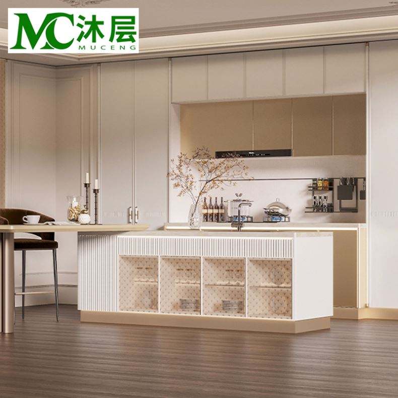 Juego de Muebles de Cocina Completo de Lujo Moderno, Muebles de Despensa con Puerta de Vidrio y Mármol para Mejoras del Hogar, Diseño de Isla de Cocina