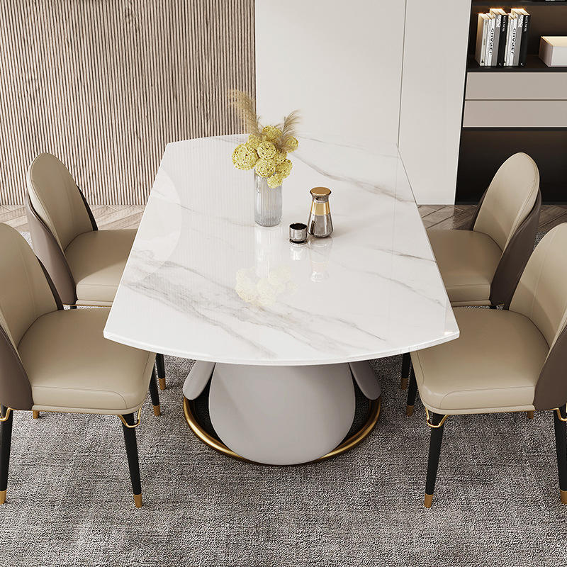 Juego de mesa de comedor de lujo moderno, mesas y sillas de comedor de mármol de hierro de 8 piezas para uso doméstico, muebles modernos para sala de estar