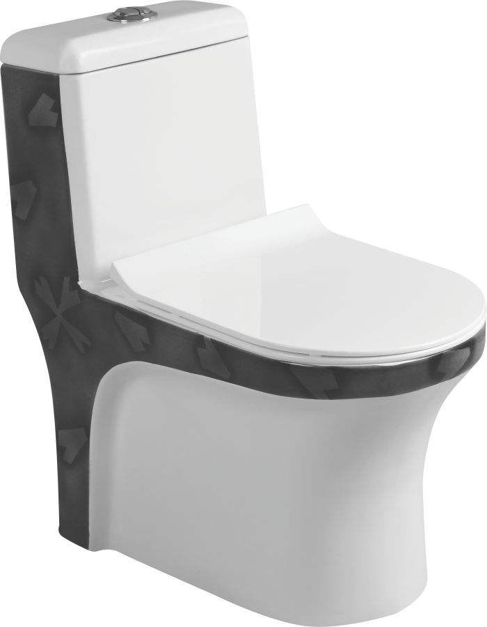 Sanitario de Cerámica Moderno, Ecológico y de Lujo, 100% Impermeable, Negro y Blanco, de Una Pieza, 1016, con Sifón en Forma de P y S para Baños