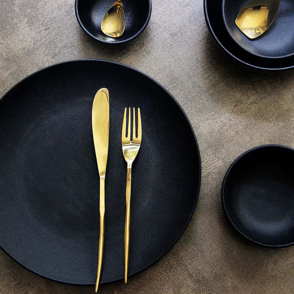 Nombre del producto:Juego de cubiertos de oro