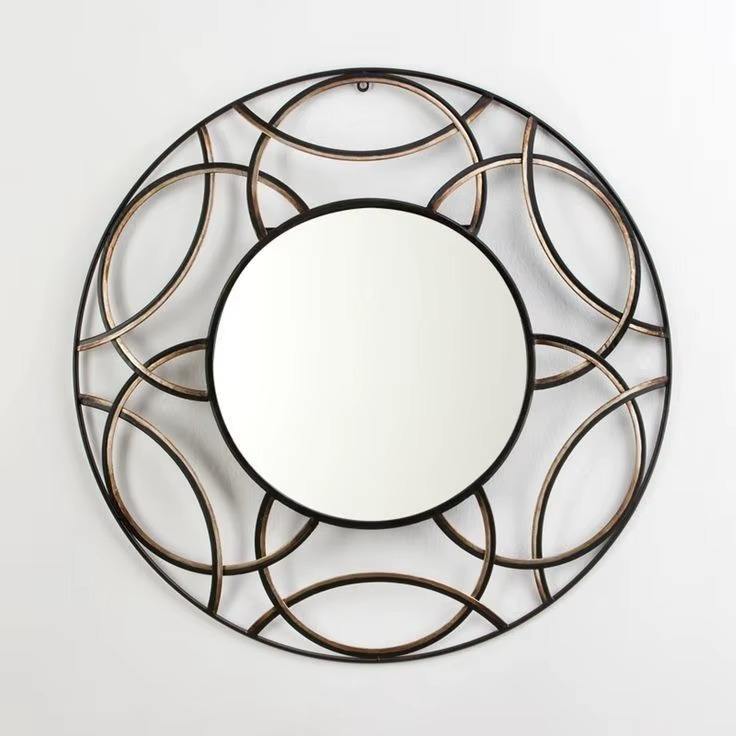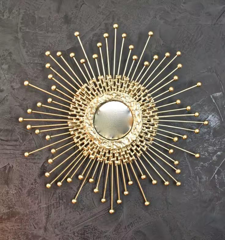 Espejo de pared decorativo hecho a mano chapado en oro de lujo moderno Marco de metal único Decoración de dormitorio hecha a mano Fabricante directo