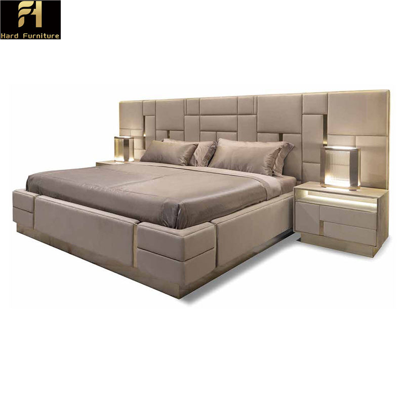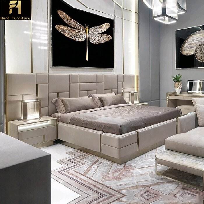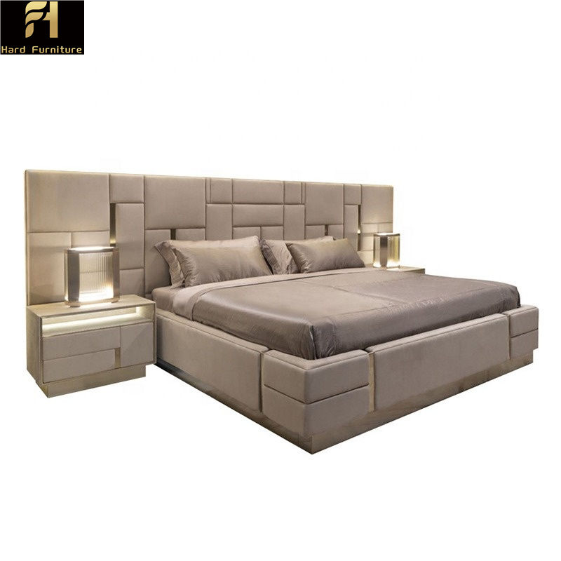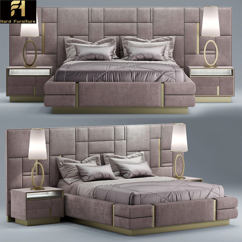Juego de Cama King Size de Lujo Moderno con Cabecero Ancho de Tela de Terciopelo Diseño de Lujo