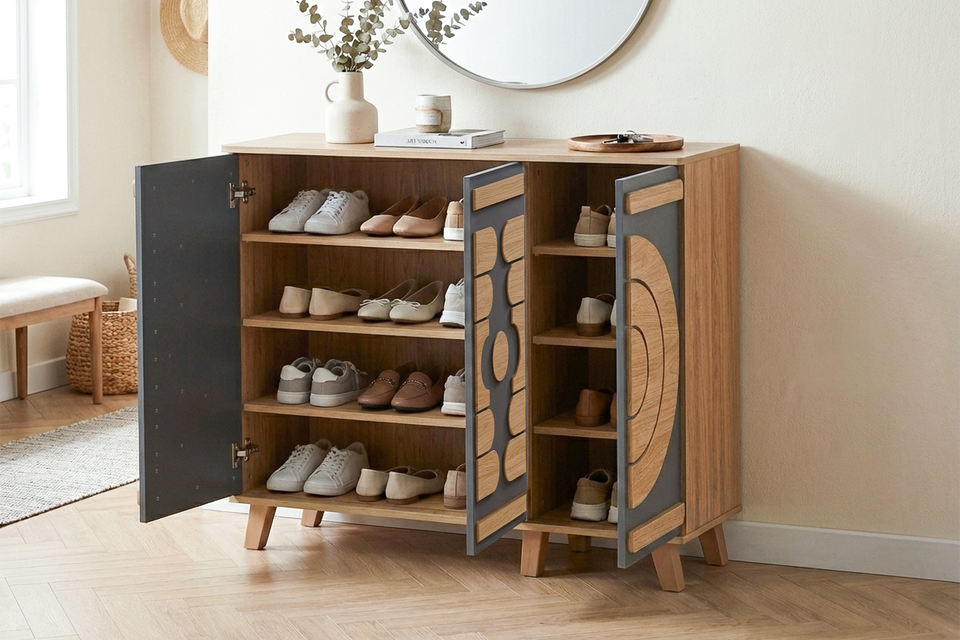 Número de Modelo:Milan 3 Doors Shoes Cabinet (Oak + Dark Grey)