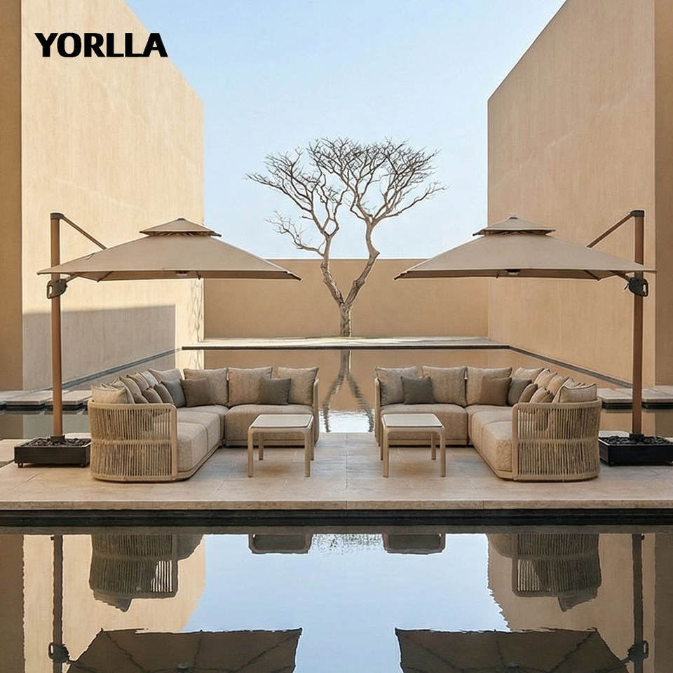 Conjunto de Sofás Seccionales de Exterior de Lujo Moderno, Tejidos con Cuerda, en Forma de L, para Jardín, Patio, Villa u Hotel