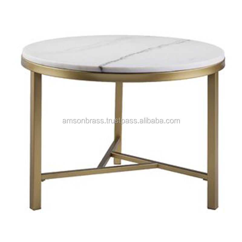 Mesa de centro lateral de lujo moderna con mesa de centro de jardín de metal dorado mesa de centro decorativa superior de mármol de diseño redondo
