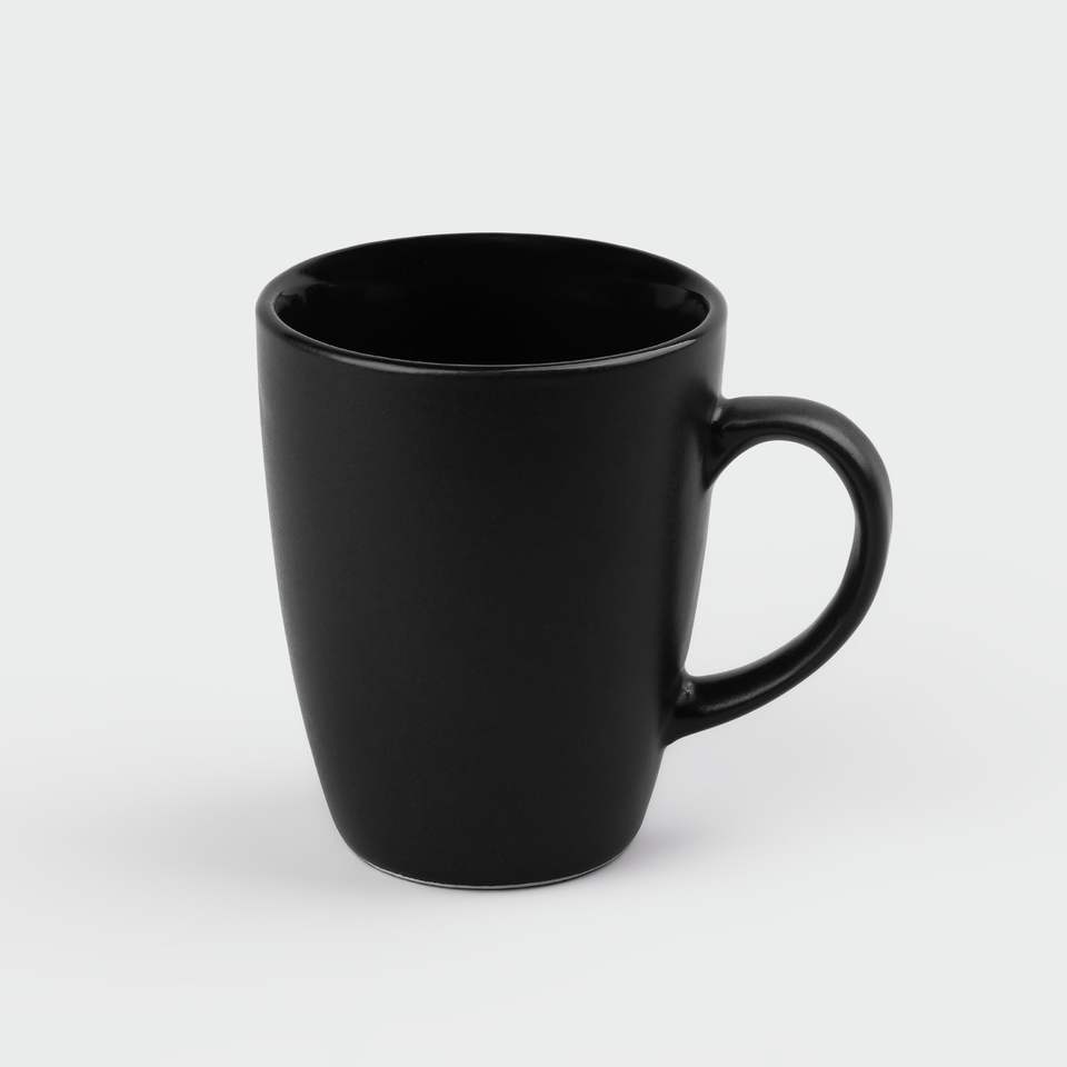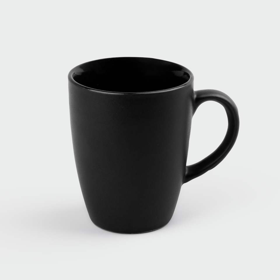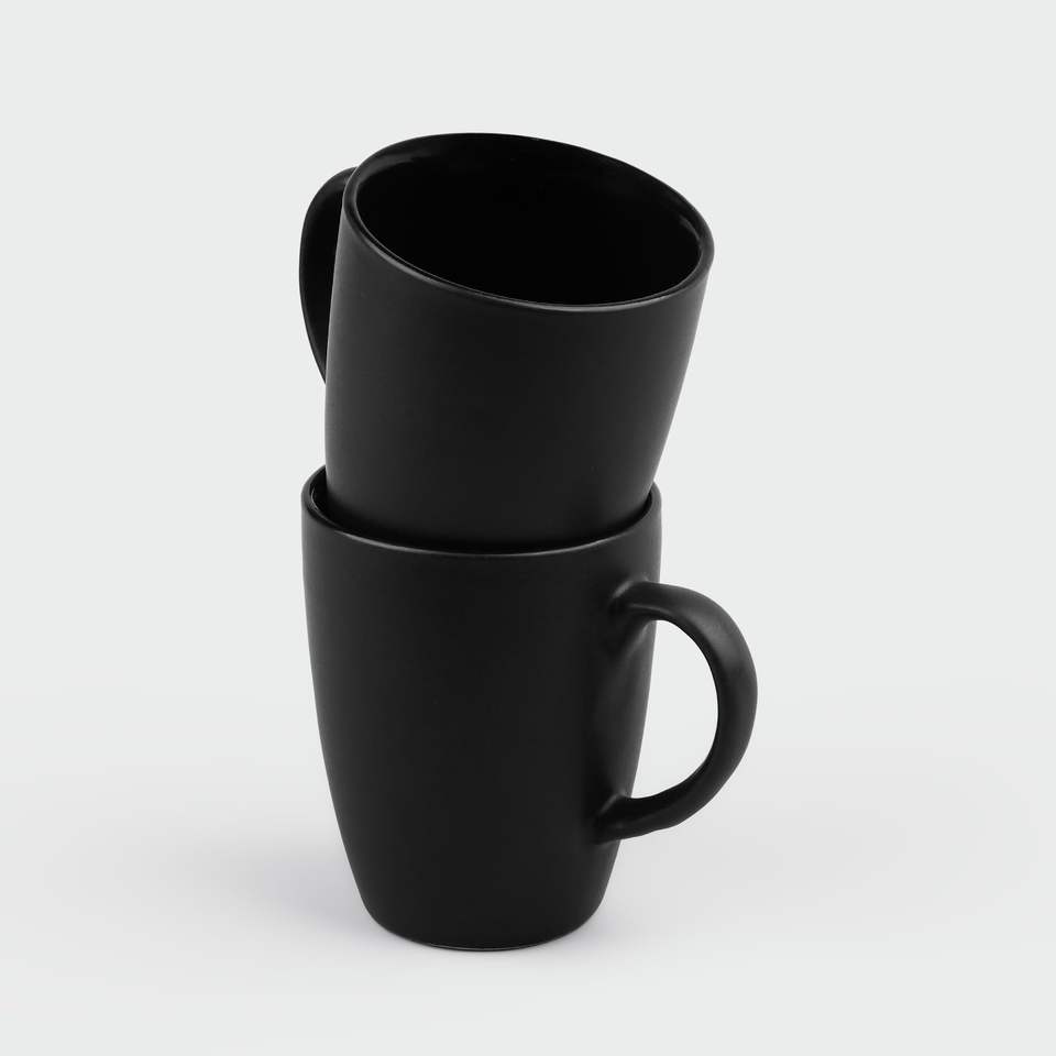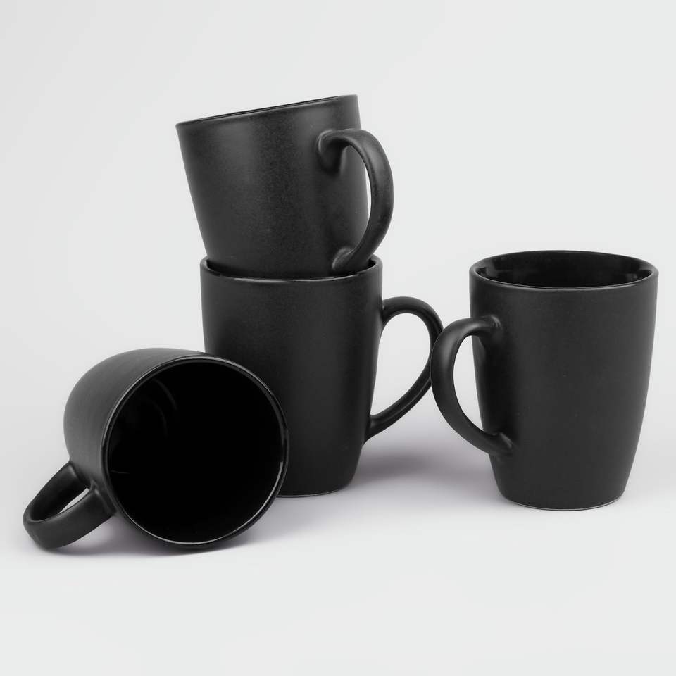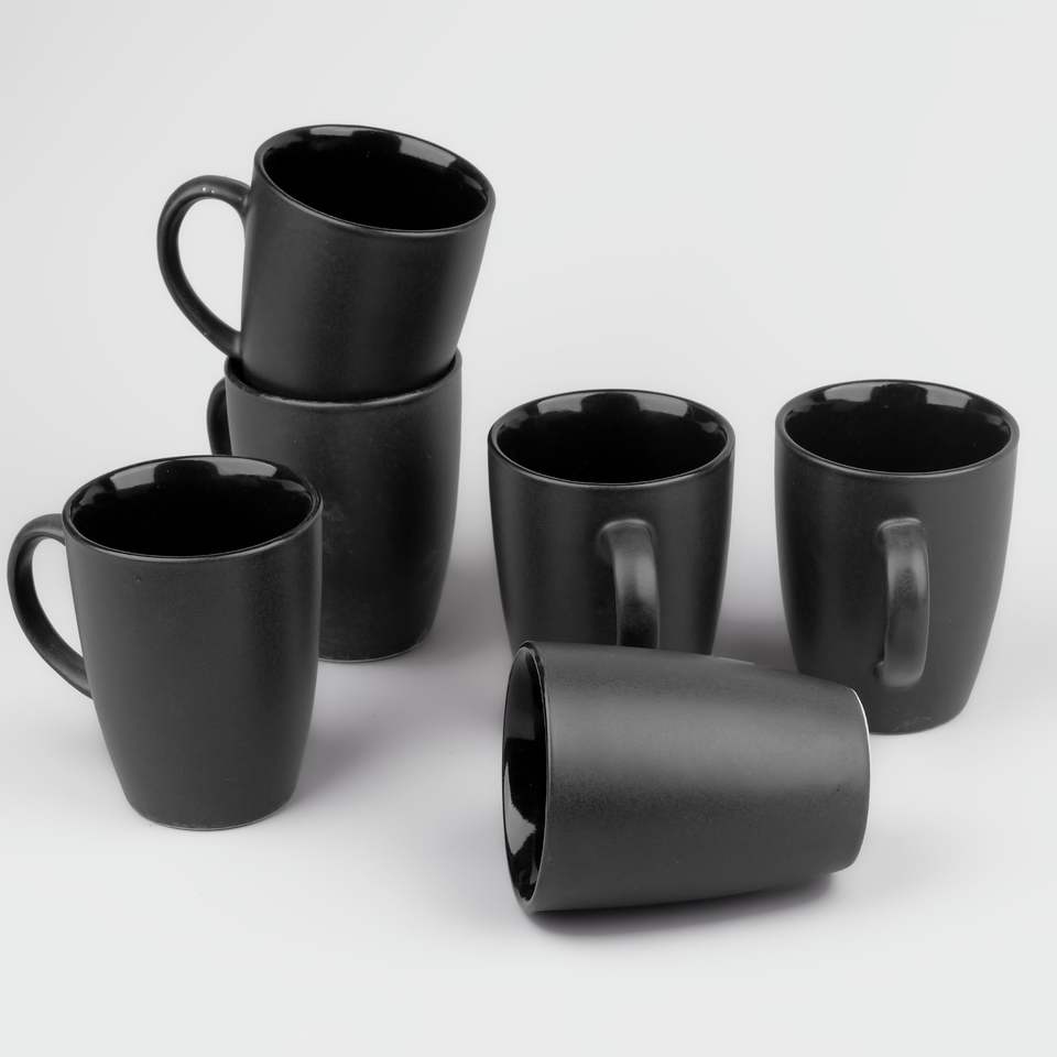 Juego de Tazas de Café de Cerámica Abhita, Color Sólido, Moderno y de Lujo, 350 ml, Ecológico, Duradero, Portátil, Negro Mate, Hecho en India, para Oficina