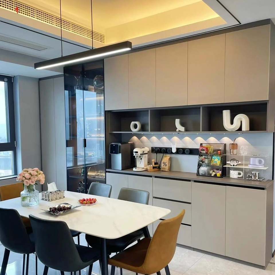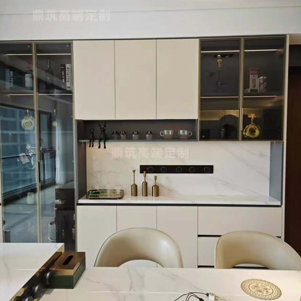 Aparador Moderno de Madera Maciza de Lujo, Estilo de Diseño Chino para Comedor y Sala de Estar con Funciones de Almacenamiento y Exhibición de Vinos