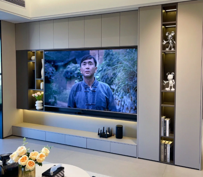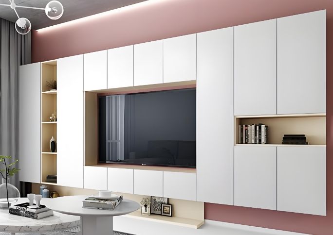 Soporte de TV de madera maciza de lujo moderno, unidad montada en la pared de diseño Simple para el hogar, comedor, dormitorio, Hotel con almacenamiento de pared completo