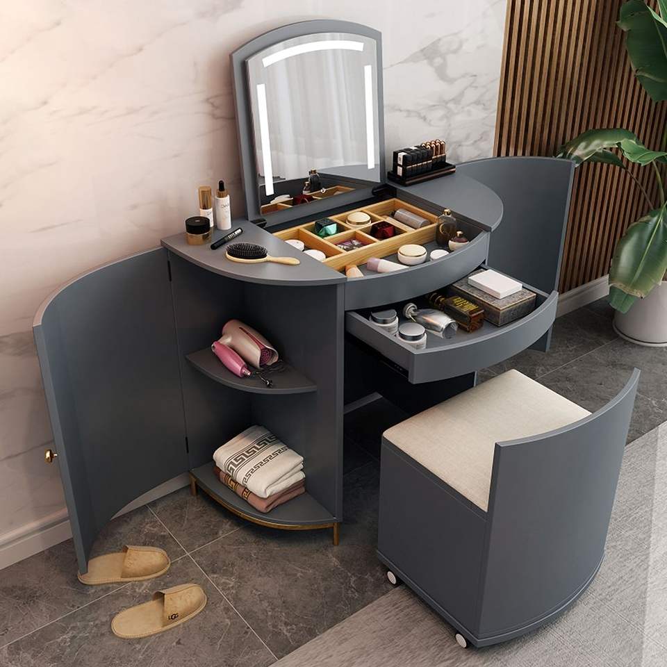Mesa de Maquillaje Moderna con Espejo y Almacenamiento, Mesa de Esquina con Taburete para Dormitorio, Proveedor de Muebles de Indonesia