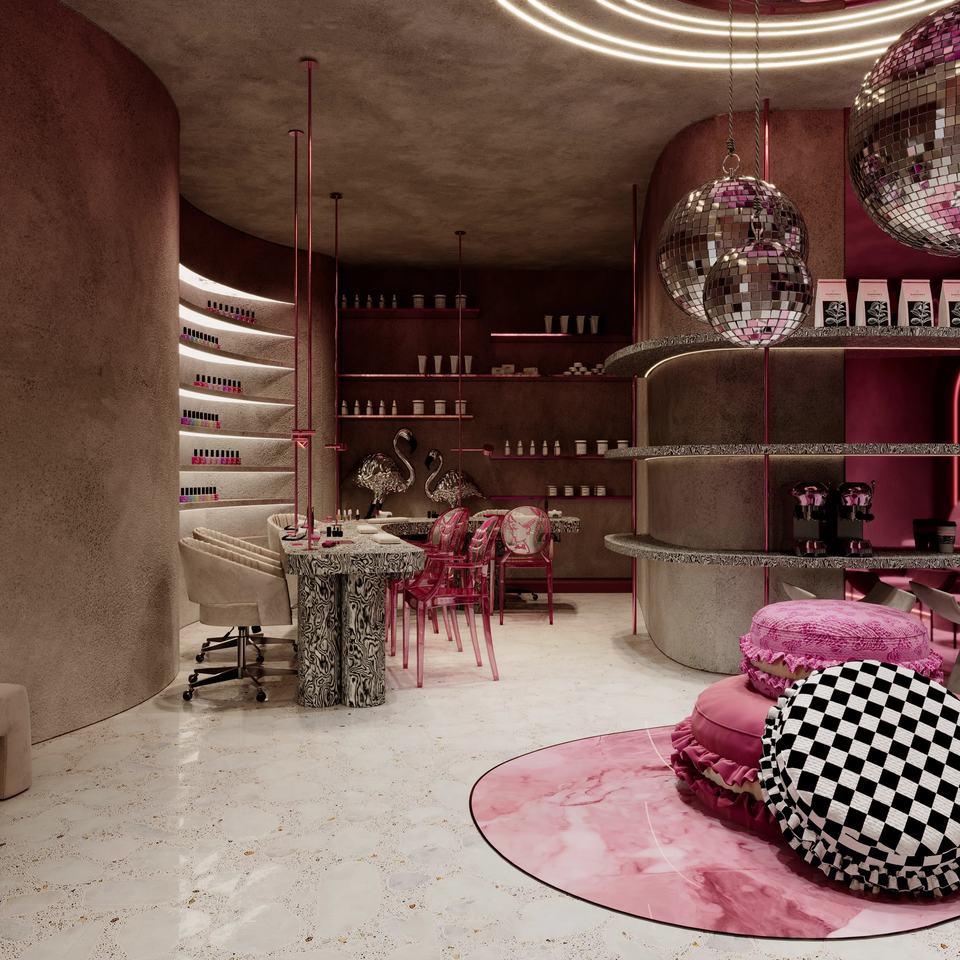 Juego de Mesa de Manicura Moderna y Silla de Salón | Servicio Integral de Diseño de Interiores para Salones de Belleza y Decoración Personalizada para Tiendas de Belleza