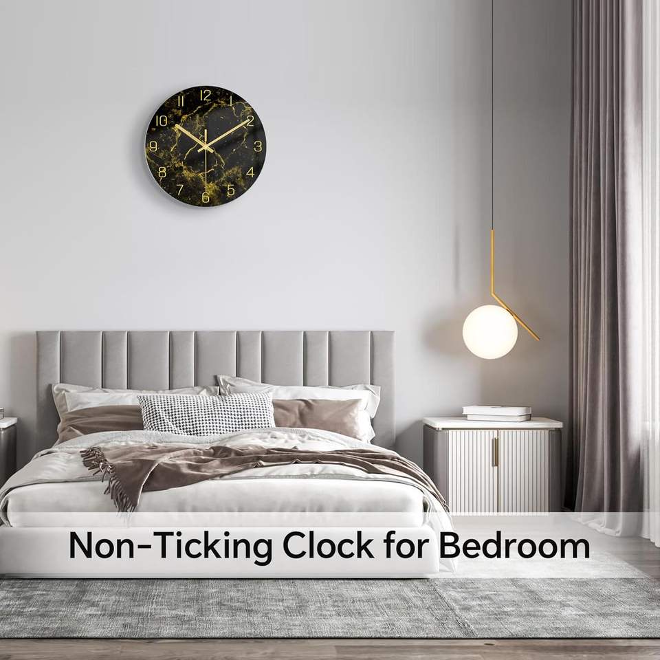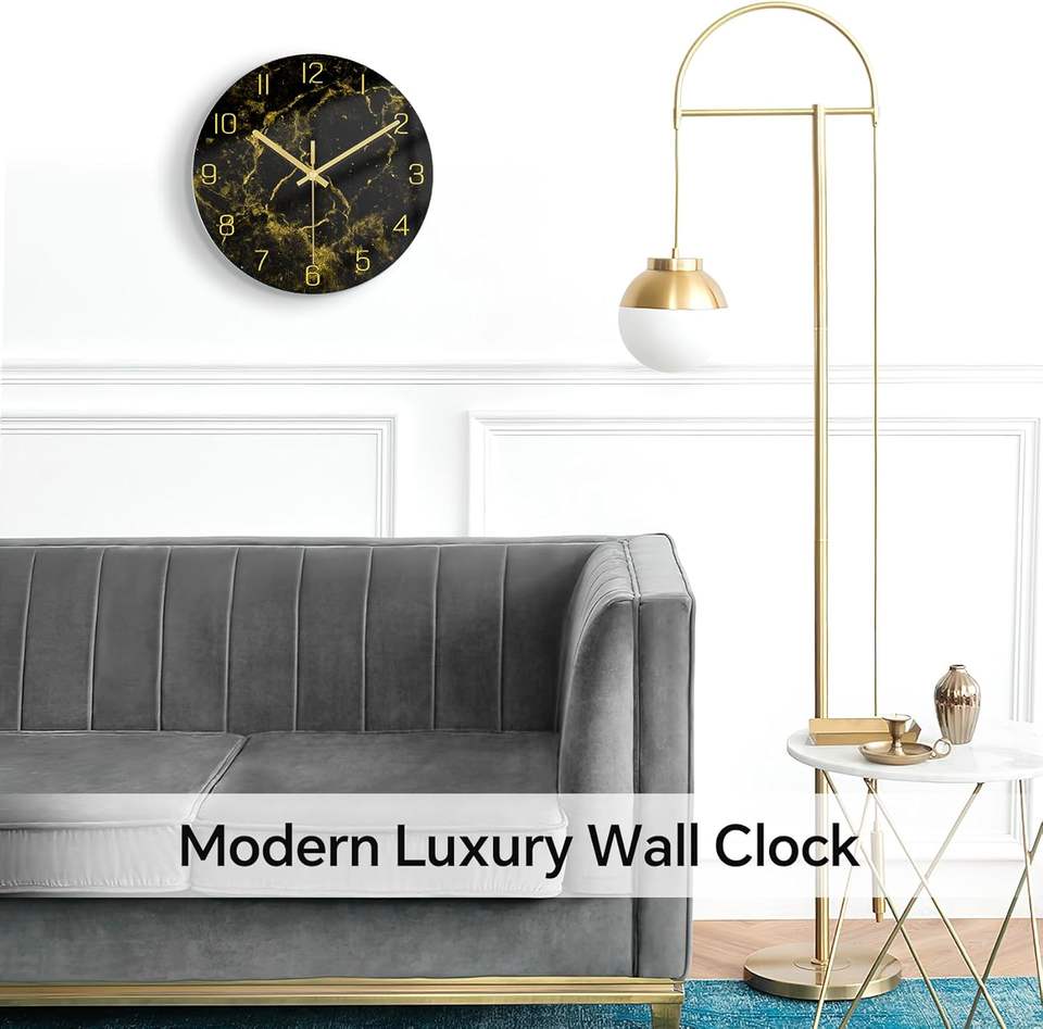 Reloj de Pared Moderno con Textura de Mármol, Manecillas Doradas, Decoración Rústica para Cocina, Funciona con Batería, Sin Tictac, Redondo Grande, de Cuarzo, Dorado