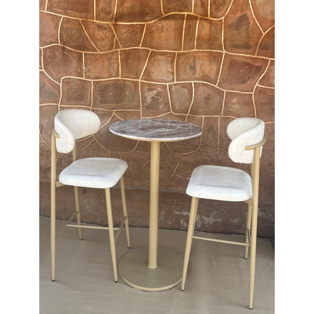 Juego de Mesa de Café Moderno con Tapa de Mármol, Base de Pedestal Metálico, Muebles de Barra para Comedor, Sillas Tapizadas, Diseño Contemporáneo