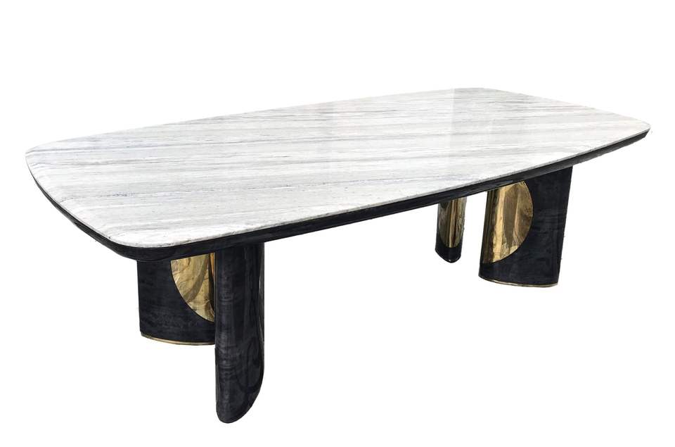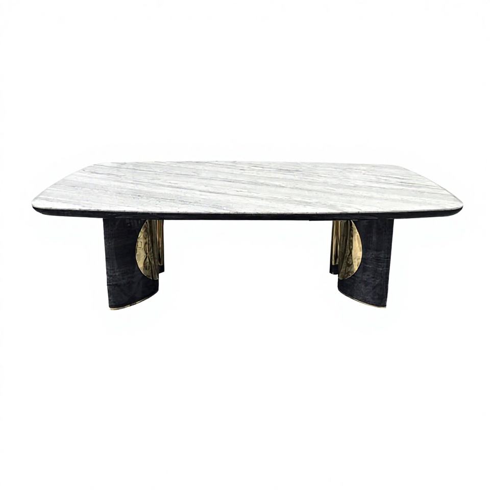 Mesa de Comedor Moderna con Tapa de Mármol y Patas de Madera, Duradera y Ecológica para Cocina, Sala de Estar o Villa