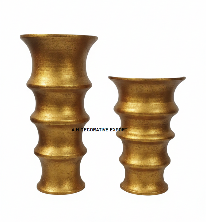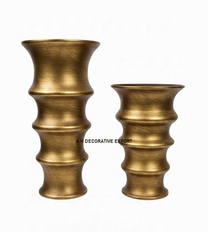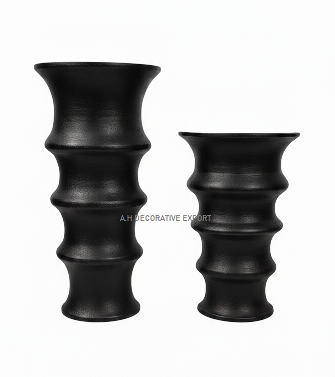 Jarrón Metálico Moderno Negro Mate con Diseño Acanalado | Decoración Minimalista Ecológica para Sala de Estar, Estilo Industrial Chic, Escultural y en Niveles, para Bodas