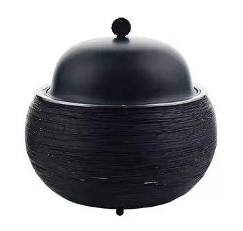 Cacerola Esférica Moderna Negra Mate con Tapa de Cúpula, Olla Térmica de Lujo para Mantener la Comida Caliente, para Servir en Mesas de Diseño