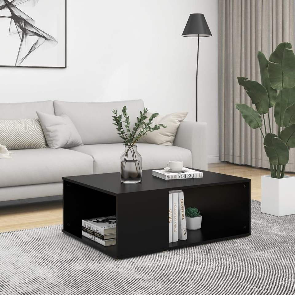 Mesa de Centro Rectangular Moderna de Madera Sintética Negra, Estilo Contemporáneo