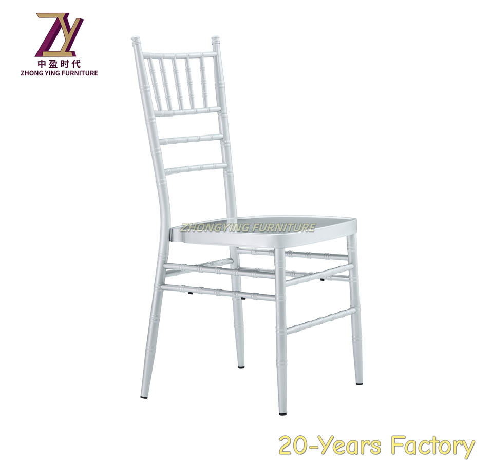 Silla moderna de metal en plata apilable para muebles del hogar para bodas, restaurantes, hoteles, centros comerciales, cocinas, comedores