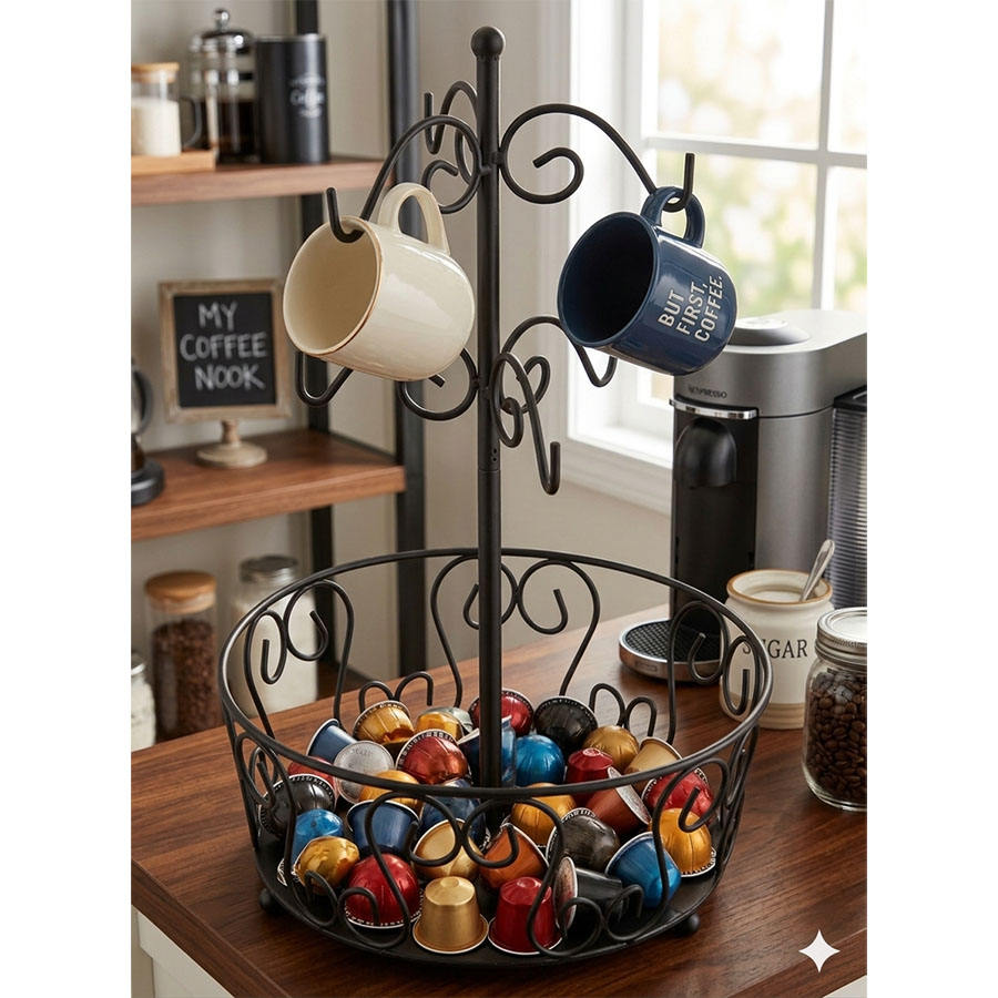 Moderno Portavasos Metálico con Almacenamiento para Cápsulas de Café