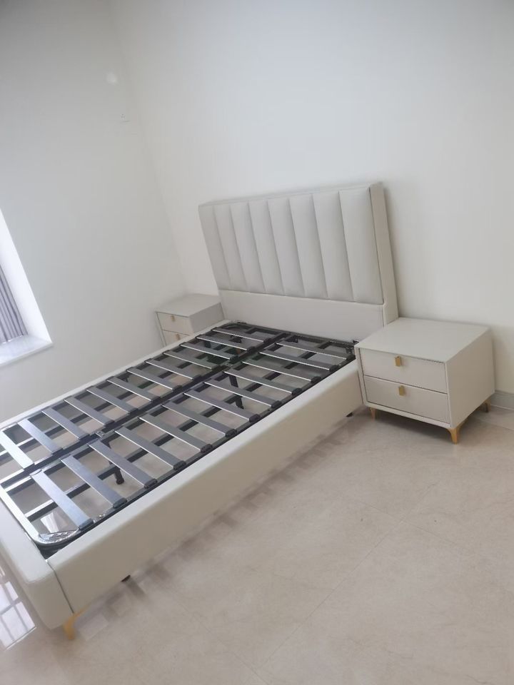 Cama Moderna con Plataforma Metálica, Luces LED y Almacenamiento con Librero
