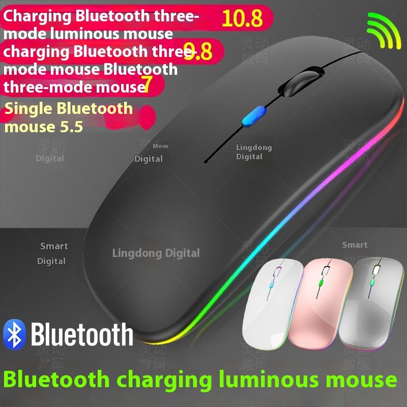Ratón USB moderno mini con retroiluminación LED, 2.4G, modo dual inalámbrico, Bluetooth 5.2, recargable, óptico, para portátil