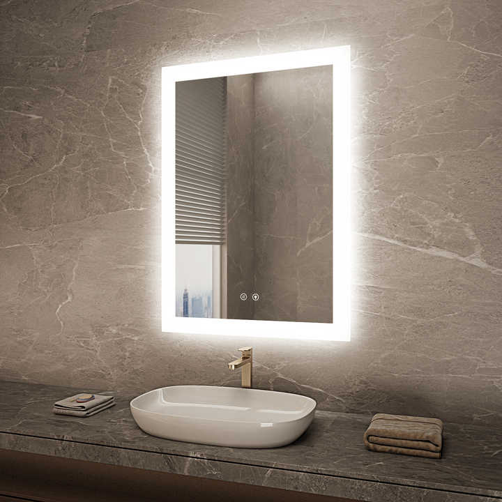 Espejo retroiluminado con borde lijado rectangular mínimo moderno con control táctil antivaho