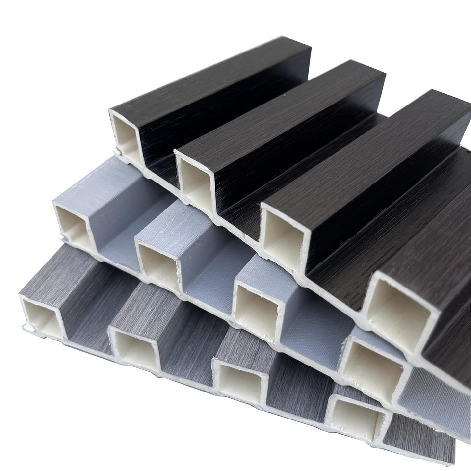 Muestra de panel de pared WPC 3D minimalista moderno, rejilla curvada de fibra de madera de bambú, muestra de paneles estriados de PVC a prueba de humedad