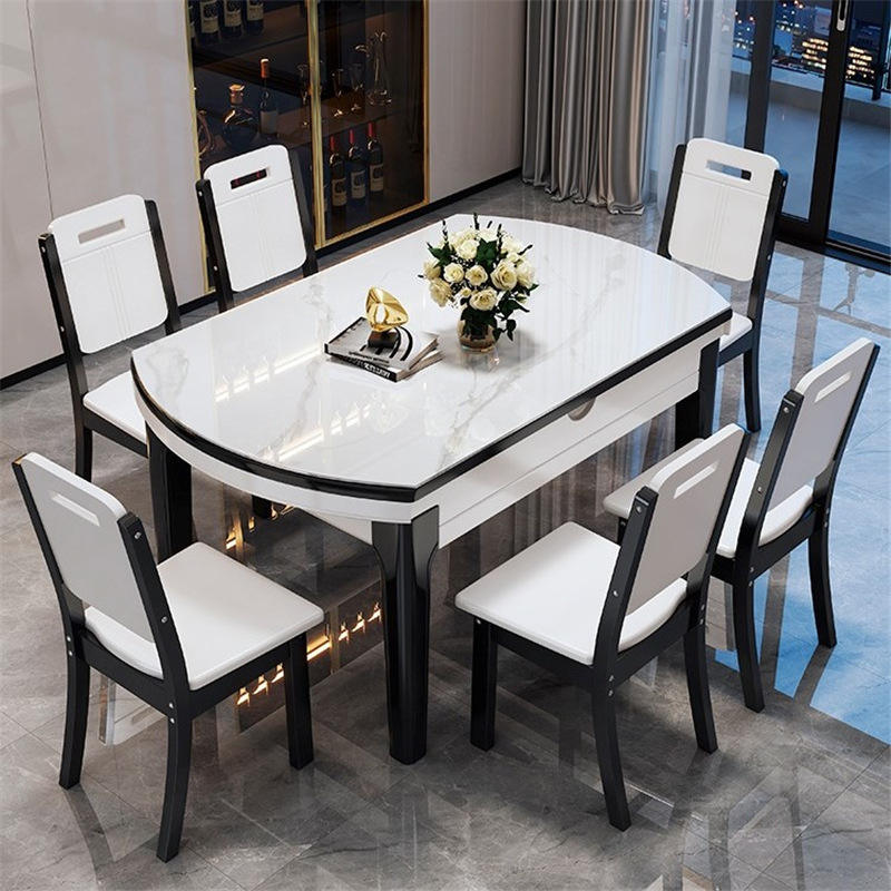 Juego de comedor de 6 plazas minimalista moderno, mesa cuadrada y redonda extensible de doble uso para el hogar o el hotel