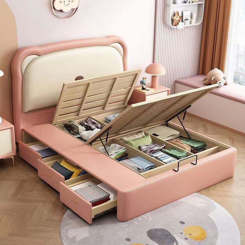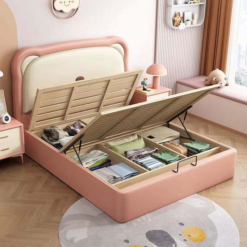 Cama doble de oso de dibujos animados minimalista moderna para niños Marco tapizado suave Pequeño Espacio Amigable