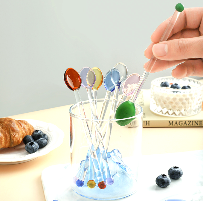 Cucharas de Vidrio de Borosilicato Resistentes al Calor, Ligeras, Coloridas, Modernas y Minimalistas, para Cafeterías, Decoración del Hogar, Regalo