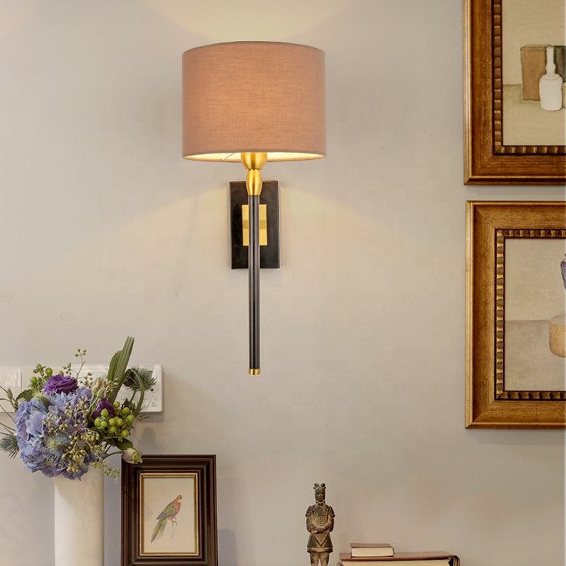 Lámpara de pared de latón de metal de lujo de alta calidad minimalista moderna con pantalla de fax de tela negra