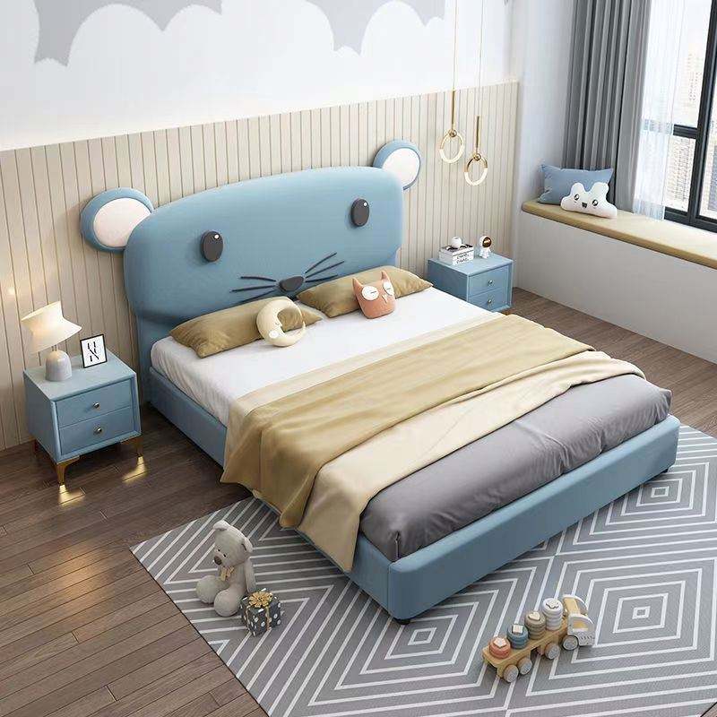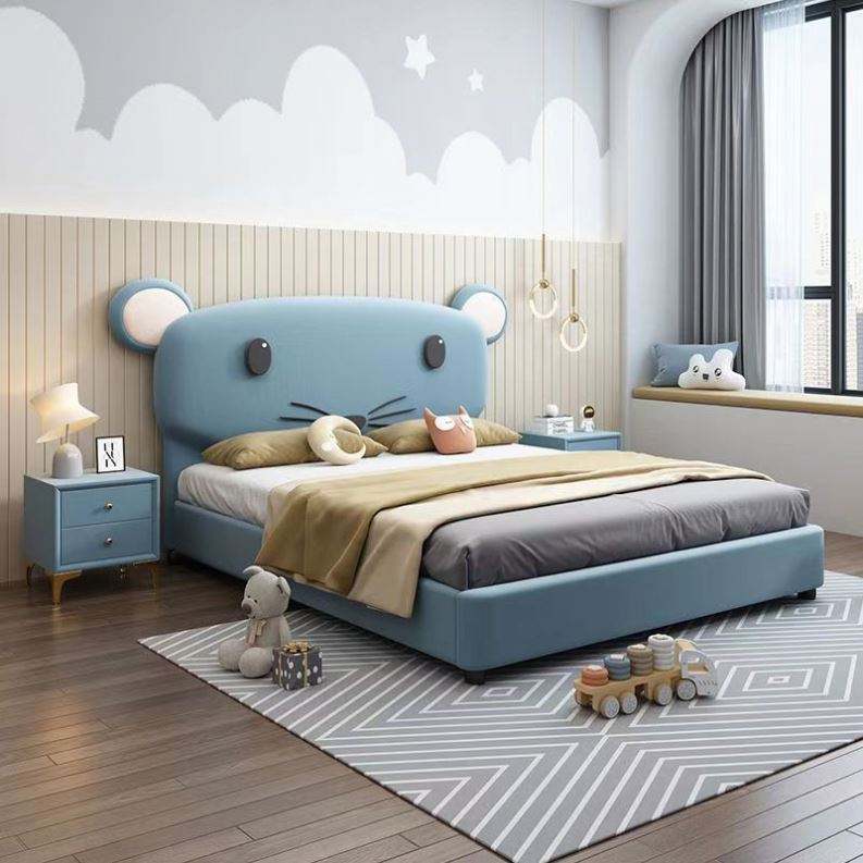 Cama minimalista moderna para niños, diseño de ratón de dibujos animados de 1,5 M, cama individual creativa para niños y niñas, espacio pequeño