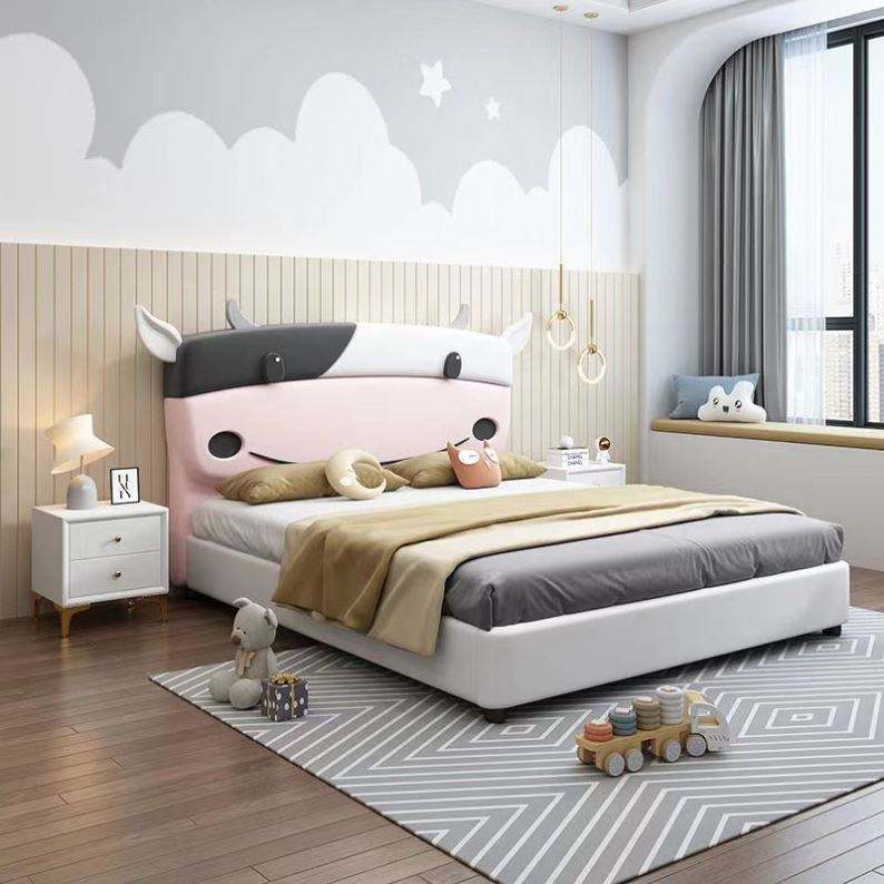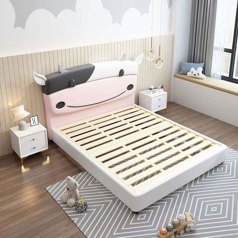 Cama minimalista moderna para niños, 1,5 m, diseño de vaca de dibujos animados, cama individual creativa para niños y niñas, espacio pequeño