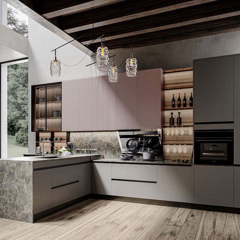 Armario de cocina modular, Cocina moderna, Respetuoso del medio ambiente, De madera, FuegoCaracterística
